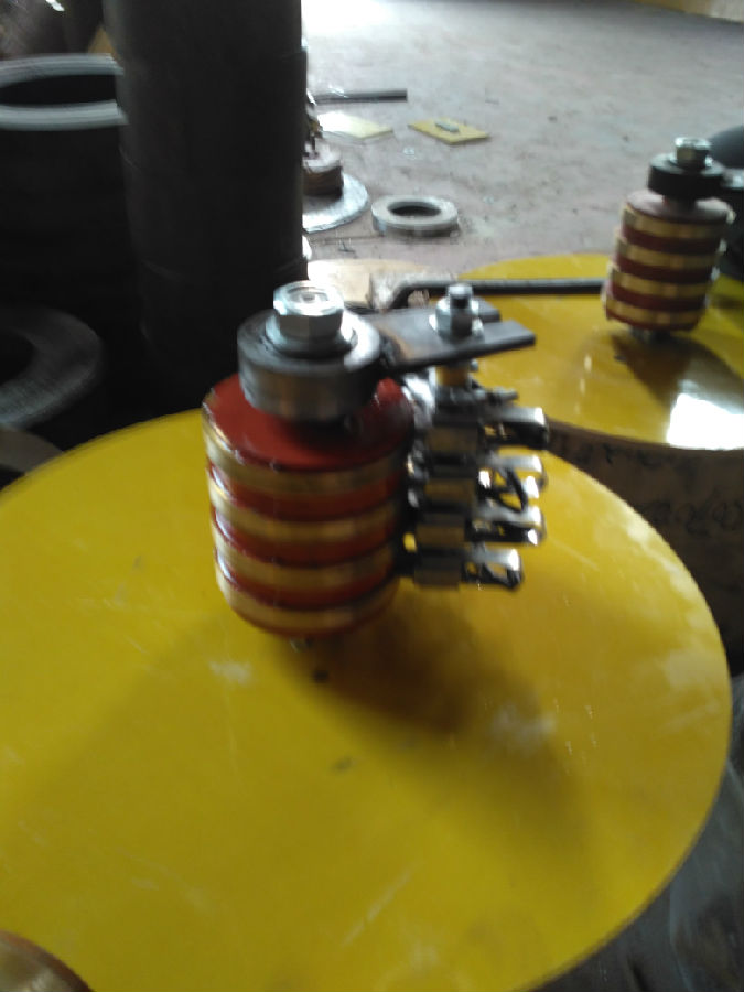 集電環(huán)能夠提高系統(tǒng)性能,簡化系統(tǒng)結(jié)構(gòu),避免導線在旋轉(zhuǎn)過程中造成扭傷。集電環(huán)的作用就是接通有相對運動的兩個物體之間的電流。直流集電環(huán)機通常與同步發(fā)電機同軸,采用并勵或者他勵接法。對于集電環(huán)表面輕微燒痕、麻點、刷痕等缺陷,可用油石、細銼打磨,最后用零零號砂布打光。使啟動轉(zhuǎn)矩達到電動機的最大轉(zhuǎn)矩,縮短了啟動過程.另外,轉(zhuǎn)子串接電阻后,還可以進行調(diào)速.電機集電環(huán)運行時間過長,因磨損和其它原因會造成徑向集電環(huán)上的鍵槽磨寬和鍵磨損,使軸與徑向集電環(huán)間隙過大而引起振動.處理方法為卸下徑向集電環(huán),重開鍵槽,換成尺度槽,若內(nèi)徑磨損嚴峻應更換徑向集電環(huán).集電環(huán)工作表面是否光滑,有無燒痕、條痕等缺陷。因此,在大容量的同步發(fā)電機中,常采用不需要電刷和集電環(huán)的旋轉(zhuǎn)整流器勵磁系統(tǒng),主勵磁機是旋轉(zhuǎn)電樞式三相同步發(fā)電機,旋轉(zhuǎn)電樞的交流電流經(jīng)與主軸一起旋轉(zhuǎn)的硅整流器整流后,直接送到主發(fā)電機的轉(zhuǎn)子勵磁繞組。