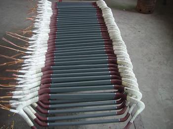 高壓大型發(fā)電機定子線圈加強型一次成型防暈結構的制備方法,定子線圈的高、低電阻防暈層與定子線圈主絕緣層同時一次熱壓成型,形成防暈結構,定子線圈端部先采用半截防暈結構,然后整個線圈端部再包高阻防暈層。本發(fā)明防暈結構是定子線圈端部采用半截防暈結構后,整個線圈端部再包高阻防暈層,該結構主要優(yōu)點是定子繞組端部對固定件及接觸部位不易產(chǎn)生放電現(xiàn)象,從而提高發(fā)電機長期運行的可靠性。