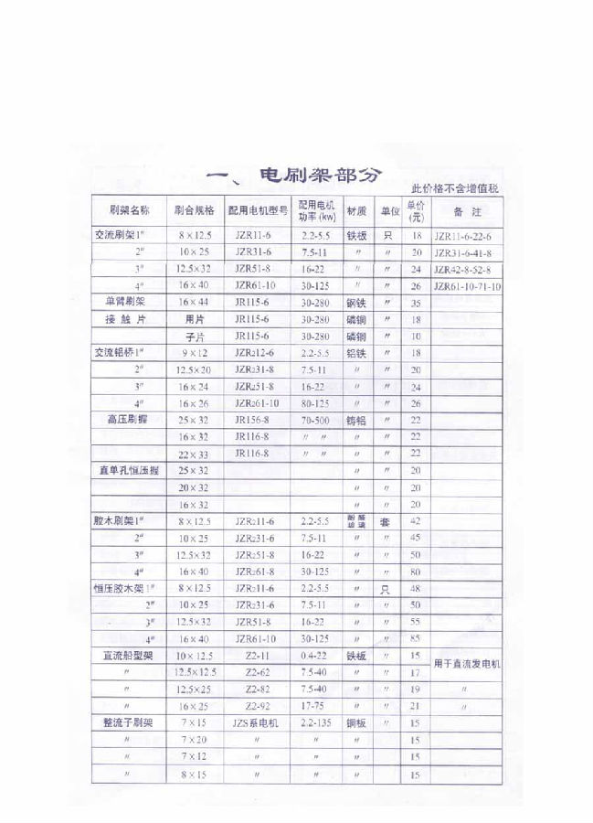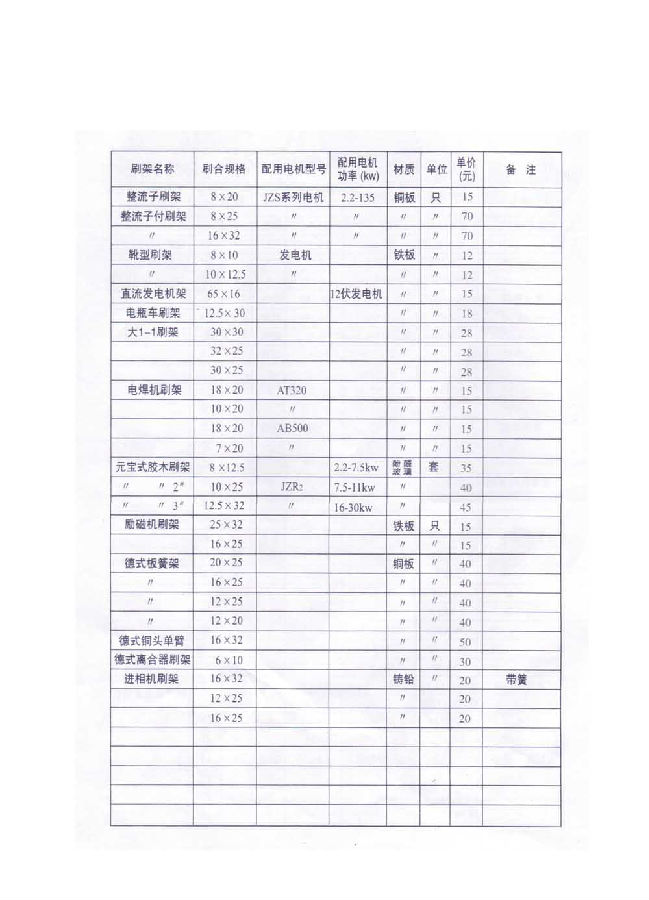 > 電刷架、刷握型號及出廠報(bào)價(jià)